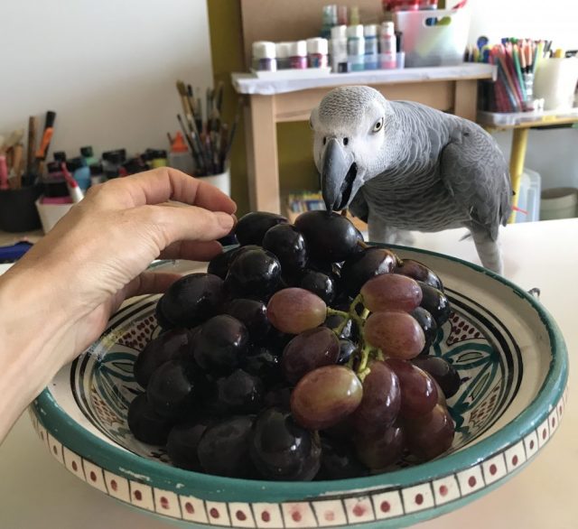 写真にはありませんが、オウムには「目玉焼き」を用意。さすがにチキンは食べないので、あわててフライパンをひっぱり出す。