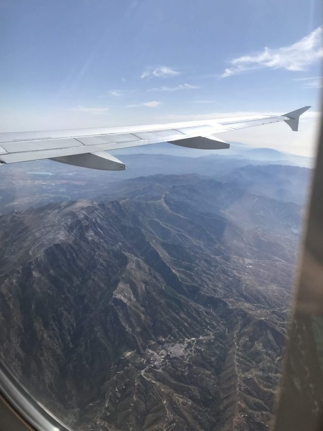 やがて内陸部へ。南スペインは乾燥しているので岩山が多く、所々に白い家々が点在しているのが見えます(2枚目)。