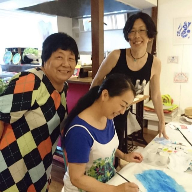 最初はみんなでおしゃべりしながら図柄を考え、ちびちびと筆を進める。それがいつのまにか言葉少なになり、筆に導かれ始める。
