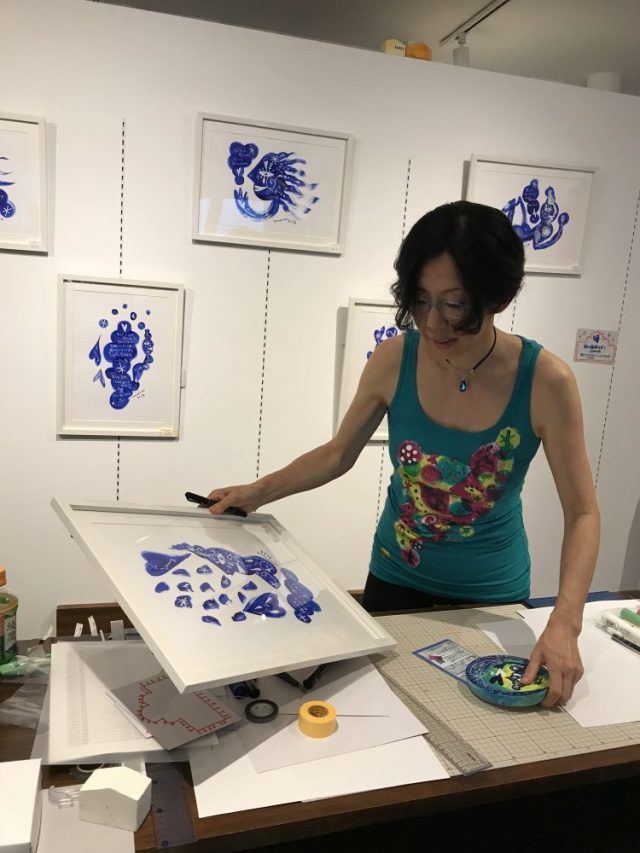 まずは額装を完了するところから。分担&流れ作業のおかげでとてもスムーズに進んでいく。