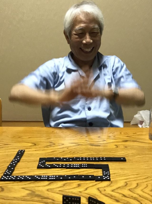 父が、空いたテーブルに同じように持ちゴマを配る。そして。そこに順番が来ると、母に代わって父がコマを動かす。