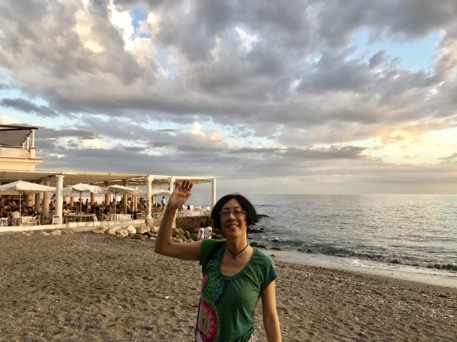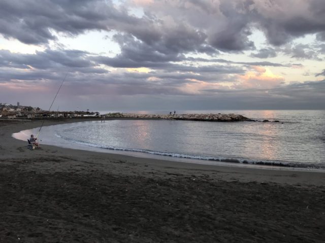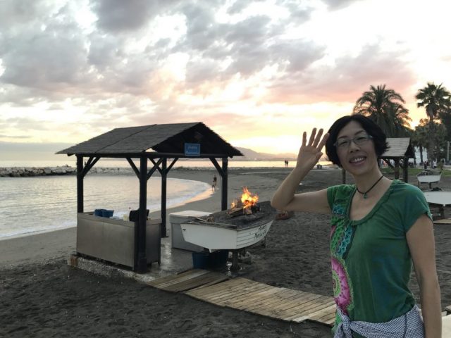 穏やかな地中海と、刻々と色を変える空を眺めながらまずはそぞろ歩き。おしゃべりするのにマラガっ子は海岸通りへ。