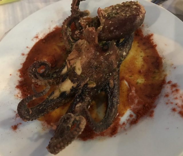レストランが軽く100以上ずらりと並ぶパセオ・マリティモ。この日は初めてのお店へ挑戦。「タコ」が目的。