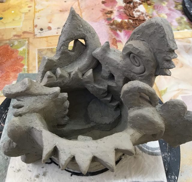 いけるのが楽しい〜。私にとっては絵も粘土も同じ。紙やキャンバスなど「面」に落とし込まなくていい分、ダイレクトに形にできておもしろい。