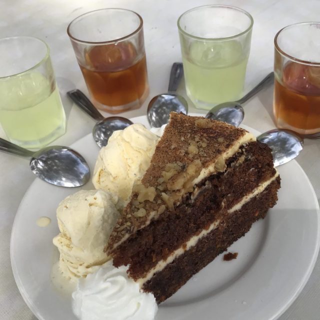 海とは違い、野菜の煮込みチーズ焼き、網焼き肉などがあります。しめはケーキ&チュピート。