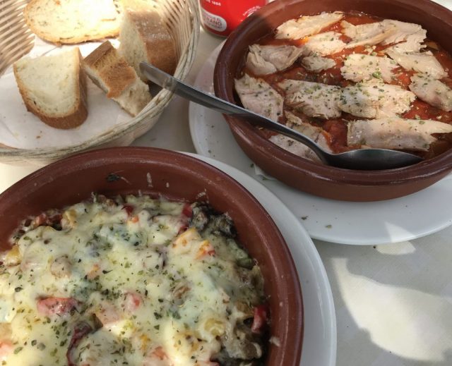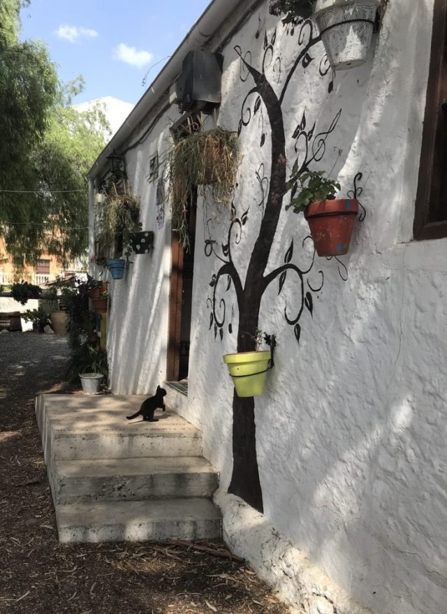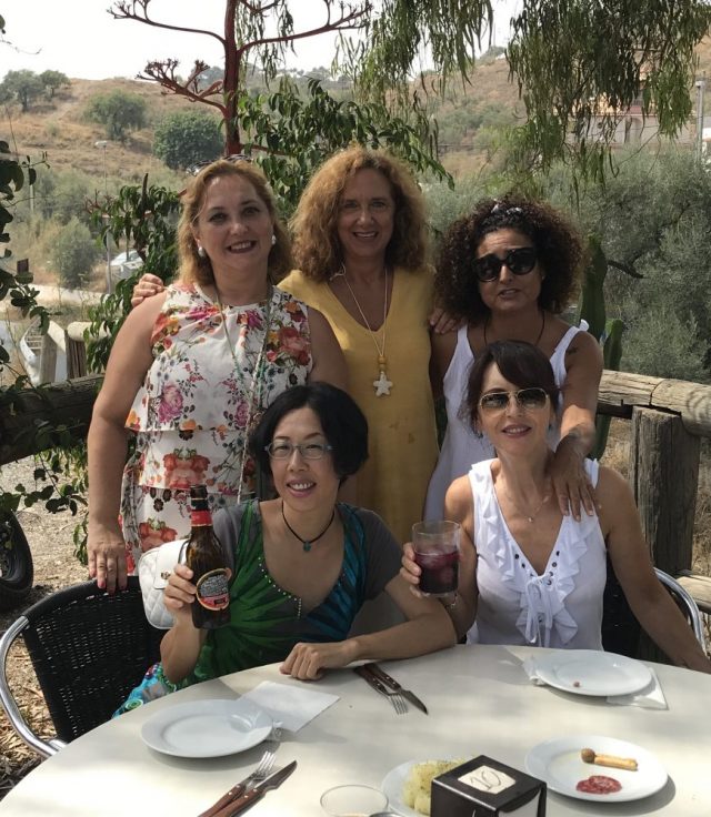 マラガの田舎のレストランで「フィフティーズランチ」。白壁の一軒家。その前の小さな庭にぽつんと置かれた4つのテーブル。