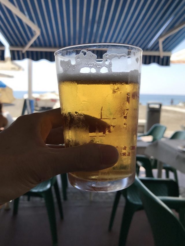 焼きイワシ、トマトサラダ、生ビールで乾杯。その後、場所を変えてコーヒー&アイスでおしゃべり。その時だった。