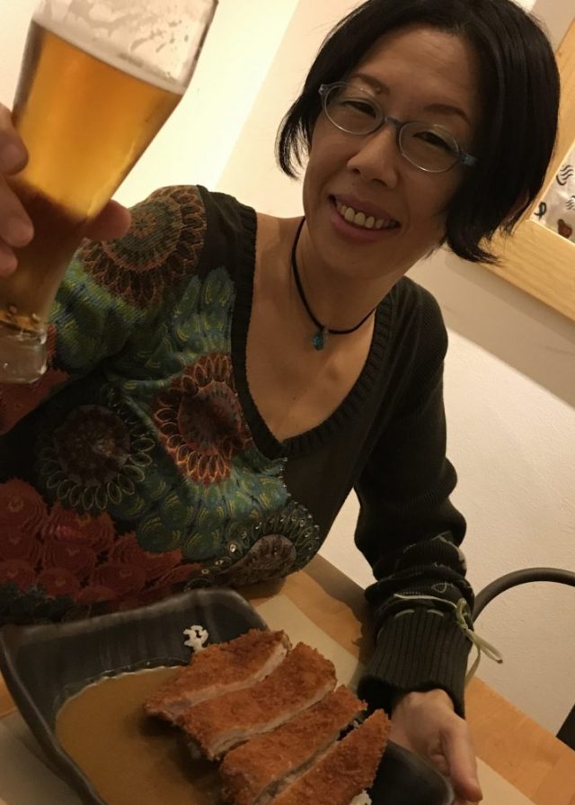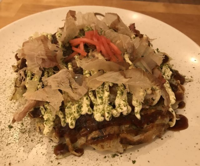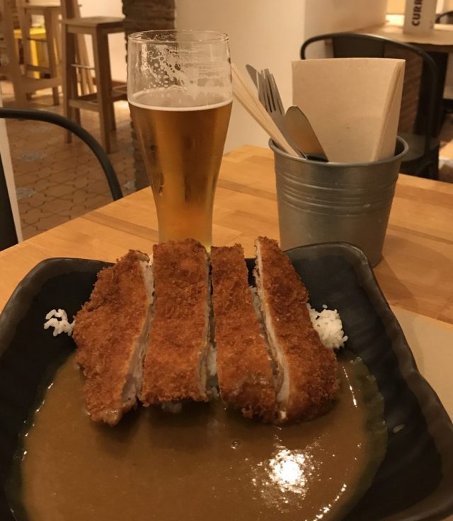 この日は「豚カツカレー(9,5ユーロ)」と「お好み焼き(10ユーロ)」を注文。日本より高いもののいい香り〜。うれしー。