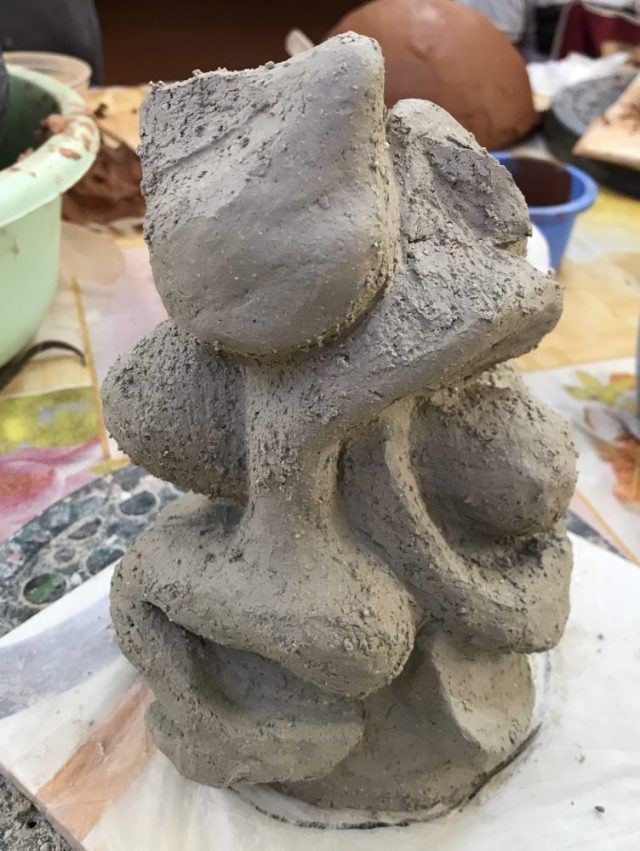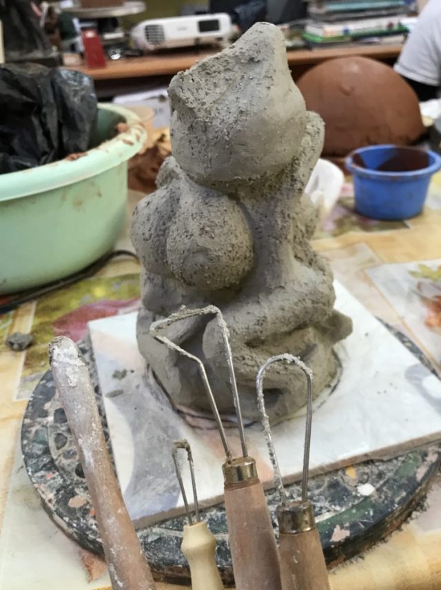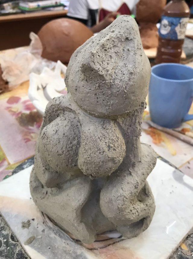 今日の陶器教室では「女像」を作った。まずはざっくりと大まかに、全体のフォームとボリュームを決める。