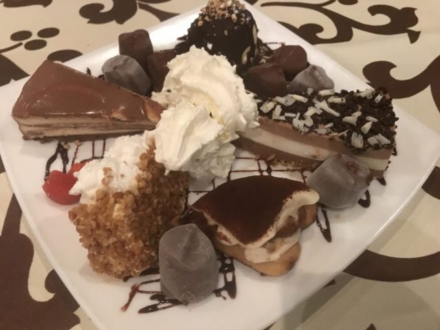まずはレストランでゆったりと夕食。夜の9時半スタート。チーズの盛り合わせに始まり、サラダ、魚、肉・・・飲むわ食べるわ。
