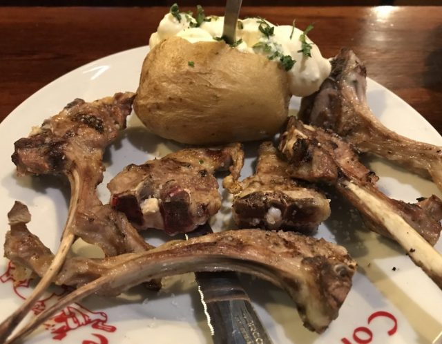 で、いきなり「子羊&タコ」。サラダも抜き。どちらもポテトがついてくるので、なかなかのボリューム。