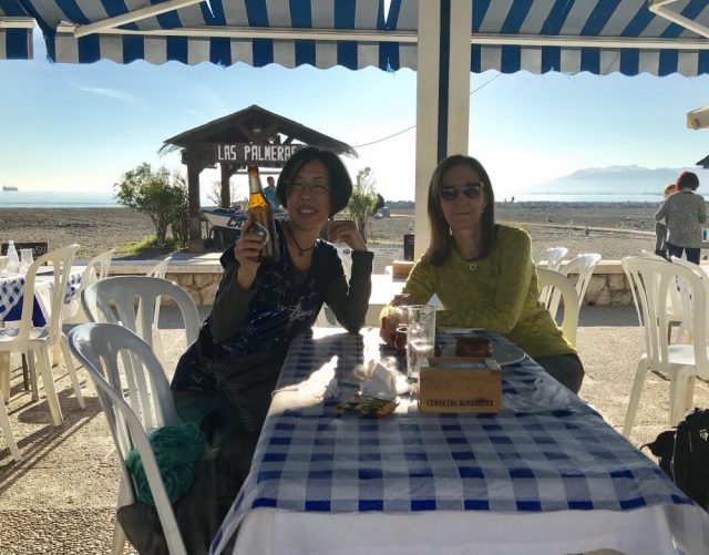 この日はカルメンと「二人忘年会」。まずは魚介類レストランでランチ。その後、海を眺めながらテラスカフェ。暑っ。12月というのに連日22度。太陽さんさん〜。