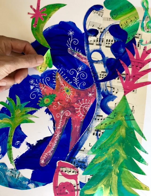 まず、額に入れる作品を決める。最初はトントン拍子。30点を過ぎた頃からペースが落ちてくる。
