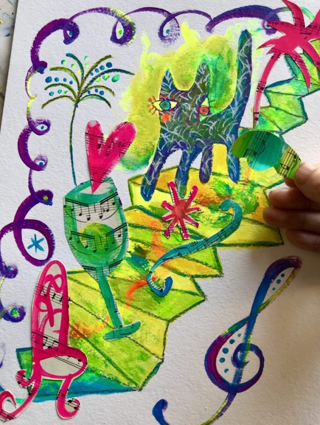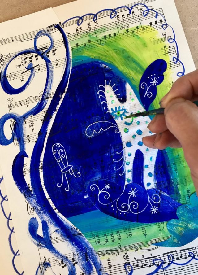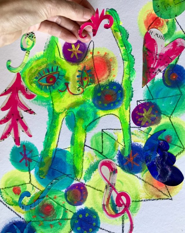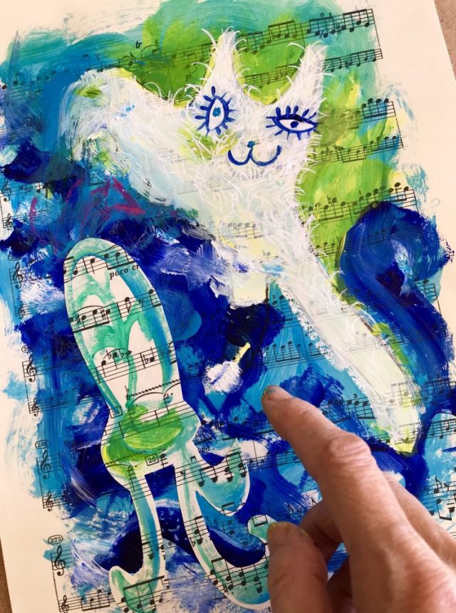絵の具で描いていると、最後は必ず「指」が登場。「ここにこの色を!」と思った瞬間、もう手が動いている。