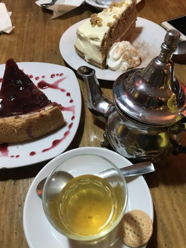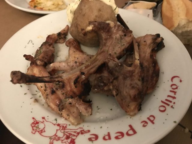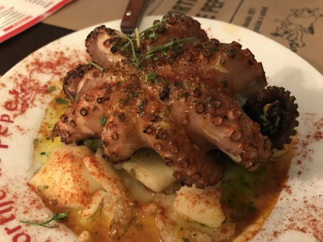 お誕生日のお祝いもかねていたので、豪快にタコ、子羊、牛のステーキなどをいただきます。炭焼きなのでおいしい〜。