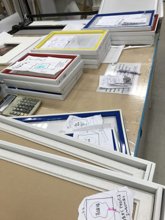 いきなり始まるドタバタ。作品のサイズをメモして持って行ったものの「マットの窓サイズ」がよくわからないためもう大混乱。