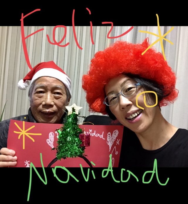 フェリス・ナビダー!親子でクリスマスイブ。テレビを見ながらスペインワインで乾杯。トレーナーにノーメイク(笑)これぞリラックスの極み。