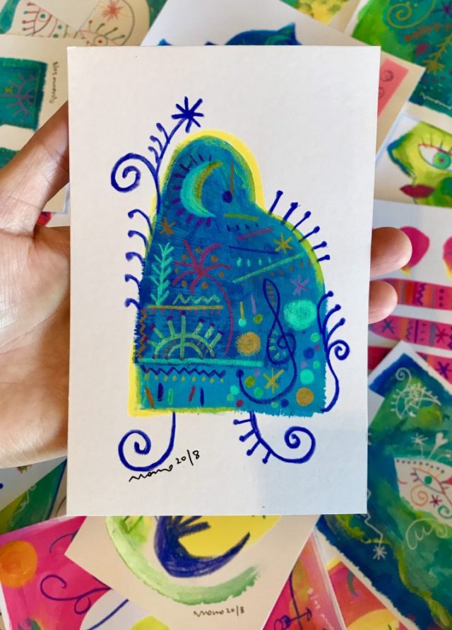 もも作品も「哲学舎」さんの常設展示コーナーに飾っていただいています。訪れる方々に少しでも楽しい気持ちになってもらえたら!と願っています。