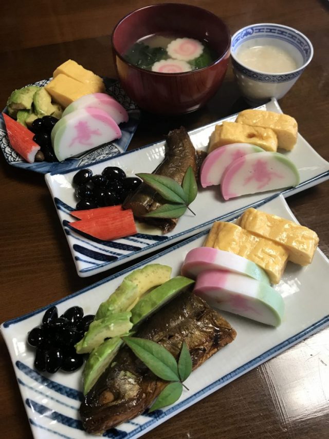 元旦の朝は「即席おせち風・朝食」を父と作った。お雑煮&甘酒つきで、ニッポンのお正月感アップ。