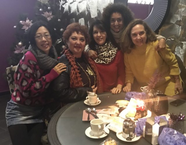マラガに着くや、休む間もなく活動開始。まずはセビジャーナス教室の仲間と「新年&お誕生日祝い」のカフェ。