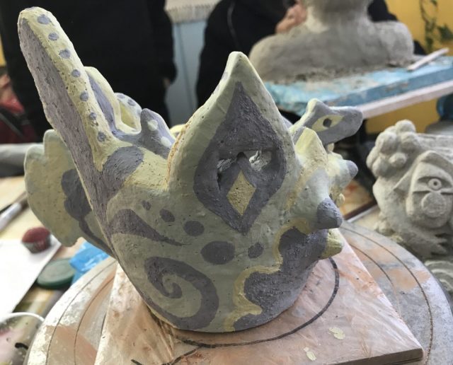 教室の先生や仲間からは「北米のトーテムポール風」「中米のマヤ風」「日本風だけではないよね(笑)」などのお言葉をいただいている。