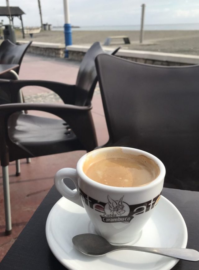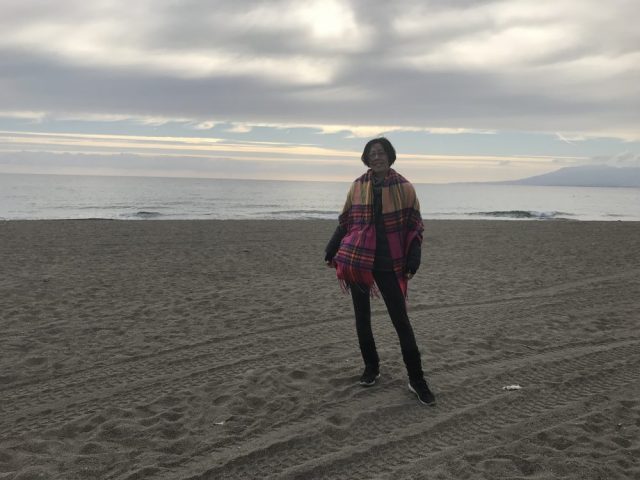 絵の仲間であるクラスティーナと2人新年会。「海が見たい!」というリクエストでうちの前の海鮮食堂へ。冬でもテラス席。