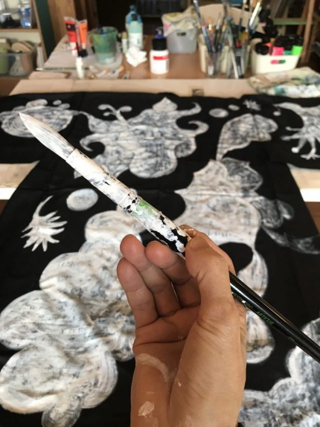 布というのは本当に絵の具が乗りにくい。どれだけ押さえても動くし。かなりの苦行。でも、それに勝る歓びに突き動かされていた。