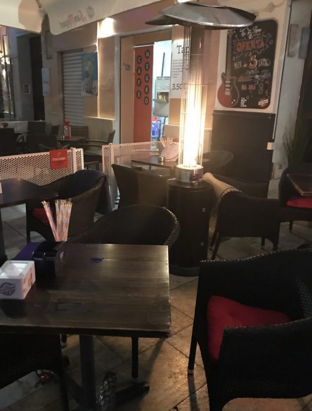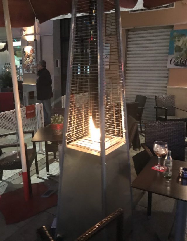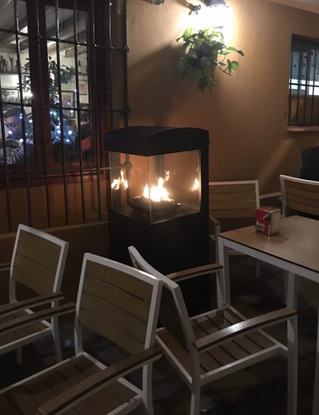 セントロのあちこちにある「ストーブのあるテラス席」。ぜひお試しください。