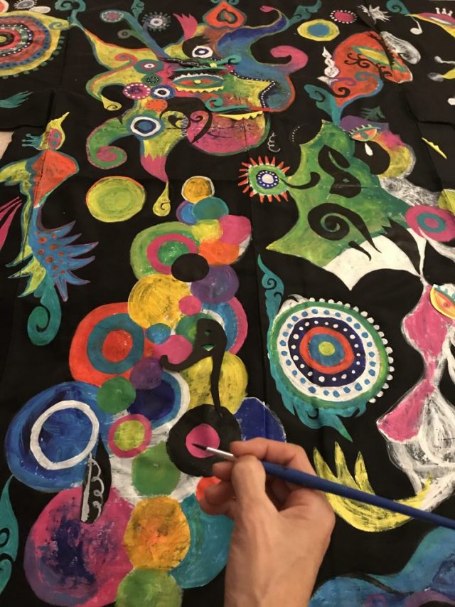 日曜日は朝から晩まで「古着物ペイント」だった。なにしろ月曜日の夜までに、作品の写真と概要を送らねばならない。