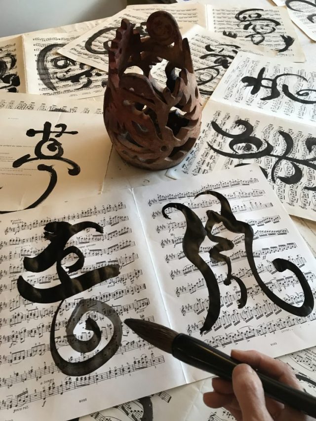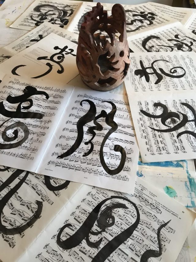 半紙などあるはずもなく、見回すと「楽譜」の山が。すごい。運命はちゃんと用意していてくれたのだ。