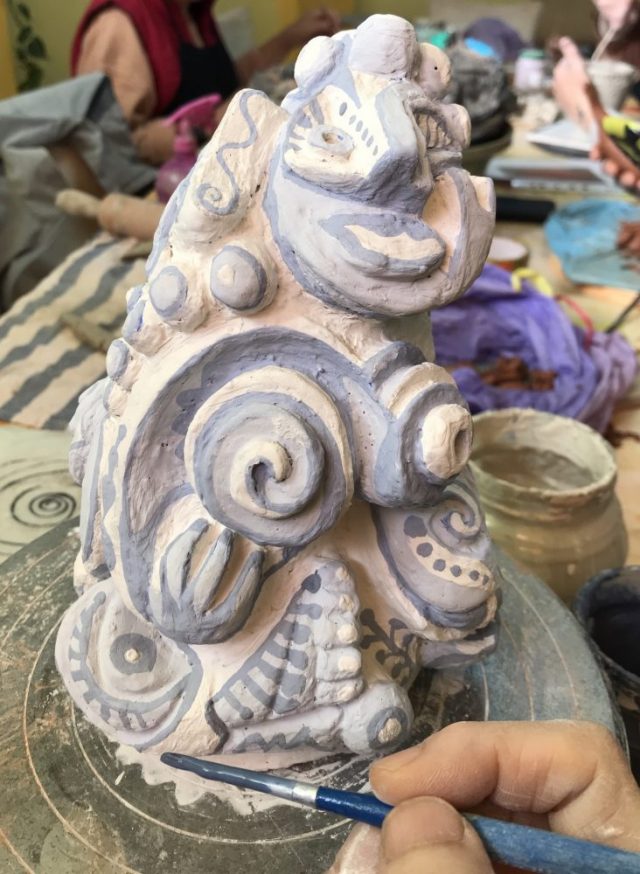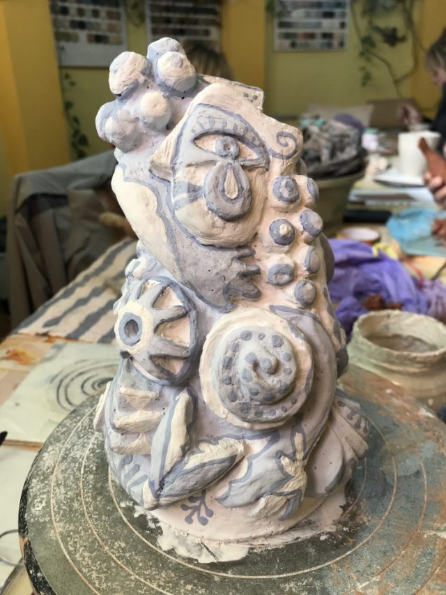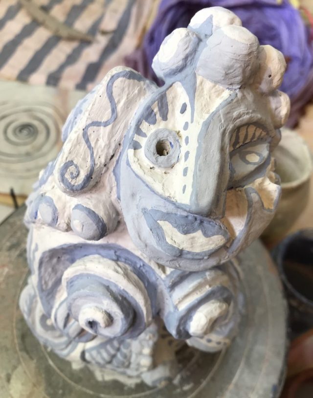 話は変わって、陶器教室。3作目「地中海の人魚」像はペイントが終了。今回は白・水色・青の3色で。焼くと「色が変わる」らしいけど本当?(疑)
