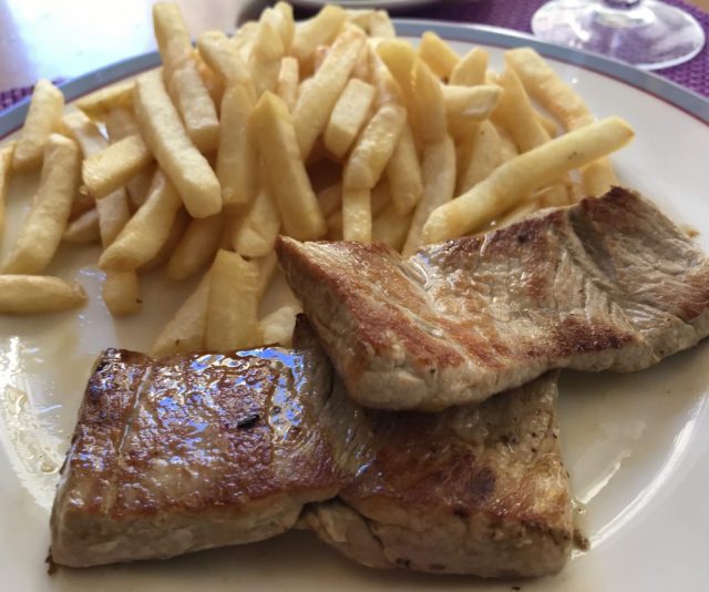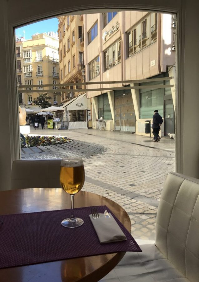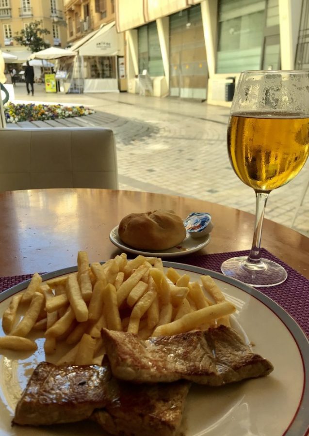 ゆったりソファに腰かけ、窓から通りを眺めながらビール。そしてステーキ。