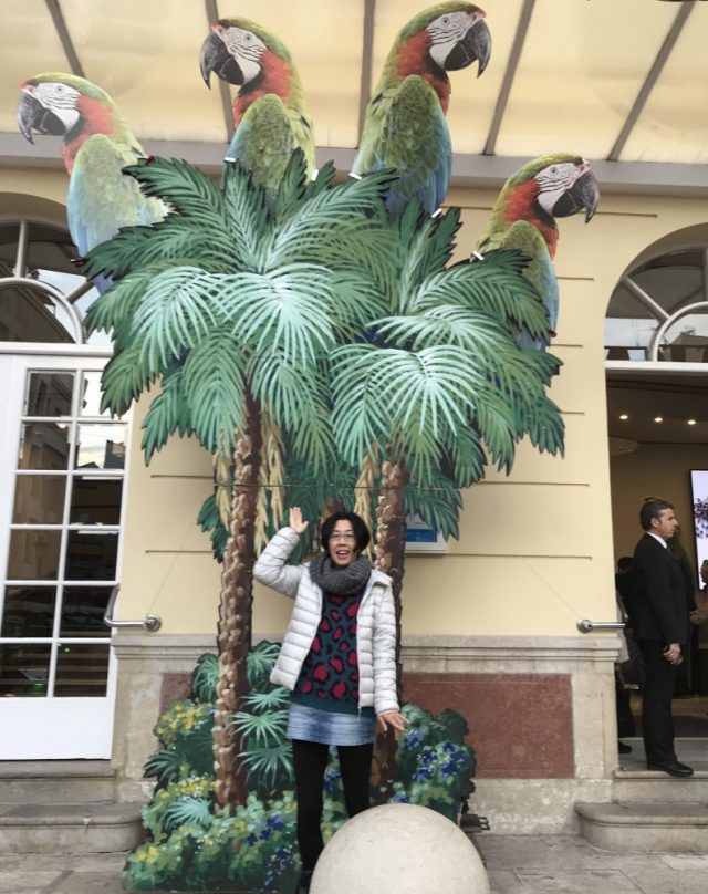 さて、今回の舞台に登場する「コンゴウインコ」君。は、とても重要な役割を果たすので、劇場の外、中、あちこちにディスプレイされている。
