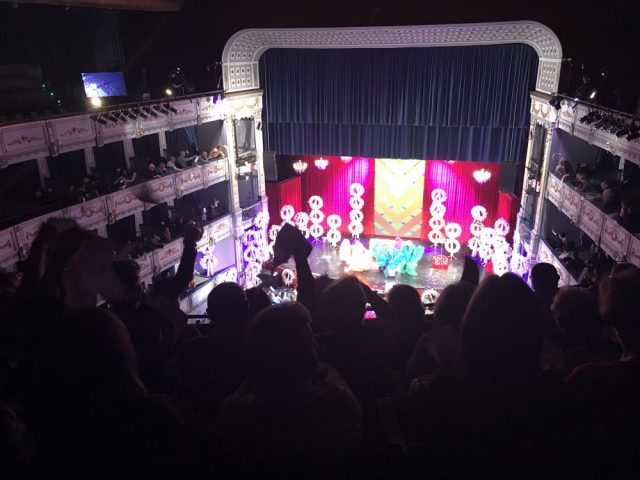 なんかもう、劇場に入る前から楽しい。テンション上がる〜。色とりどり。ヤシまで飾られて。