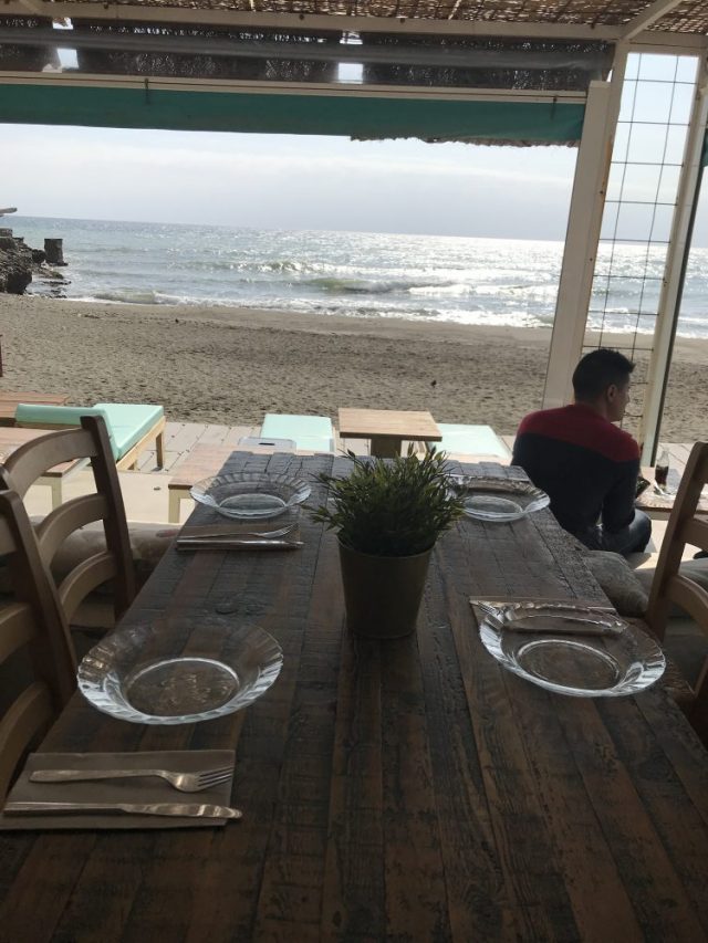 小春日和のマラガ。51歳のバースディランチは地中海を眺めながら。なんて贅沢。素朴な造りのレストランがバケーション気分にさせてくれる。