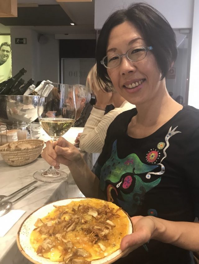さすが首都マドリッドはおしゃれな店が多い。レストランの数もハンパなく、どれも見るからにおいしそ〜。この日はカウンターランチ。