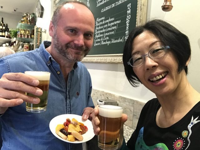 この日はハビ吉と楽しくおしゃべりランチ。そして、散歩しながら2軒目の庶民的バルで生ビールとタパス。
