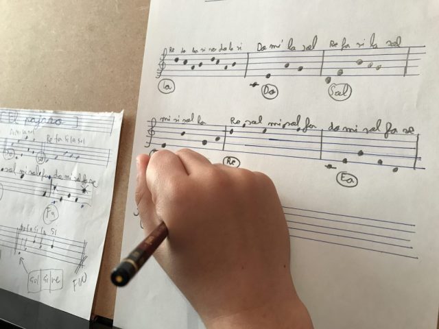 作曲をするセルヒオ。ソルフェージュを学ぶアレハンドラ。子供たちの手を、表情を毎日見て暮らしている。