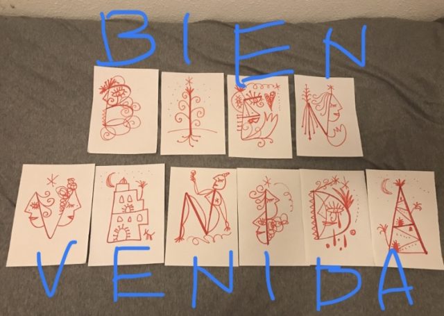 BIENVENIDA 。それぞれの文字を活かして「絵」を描く。子供の時よくやったゲーム。私が大好きだった遊び。