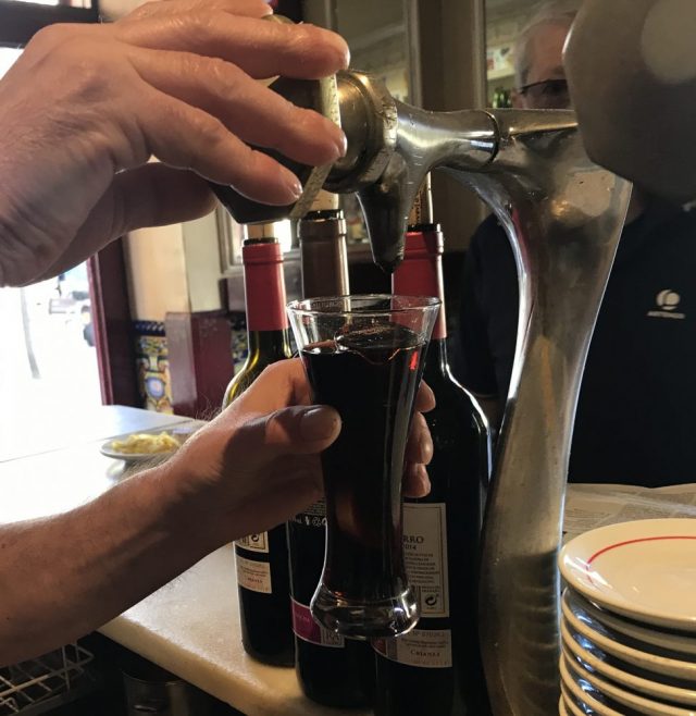 瓶からでなく「蛇口から注がれる」ところがポイント。おいしい〜。夏によく飲むベルモット。スペインでは「ベルモウー(ベルムー)」と発音。これで一杯2ユーロ。安っ。