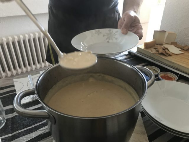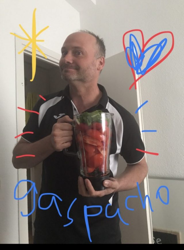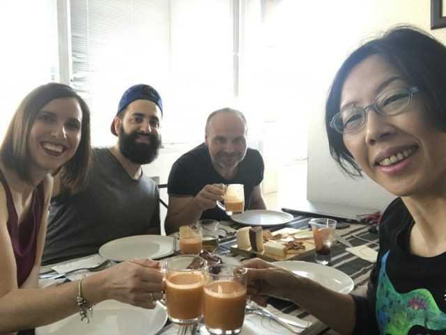 ホルヘ&パトリシアが「カナリア産のチーズ3種」を持ってやって来る。これが本日のスターター。そして「ガスパチョ」。