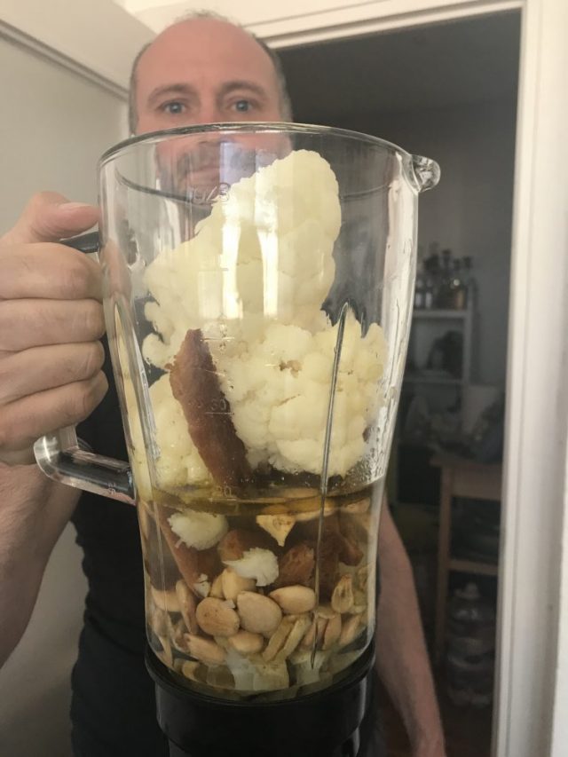 さらに「カリフラワーのクリームスープ」。これがめちゃうま。見た目からは想像もつかない手間のかかりよう。なんと揚げたパンやアーモンドなどが入っている!