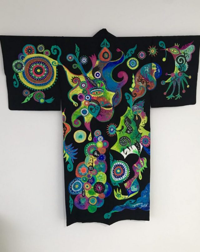 着物ペイントの展示会場に「パワーレンジャーが参上!」という話。笑。(日本で言うゴレンジャーとかのスペイン版)。