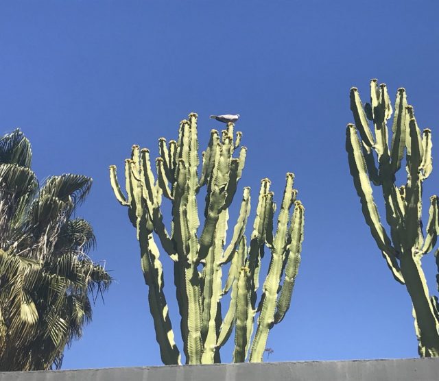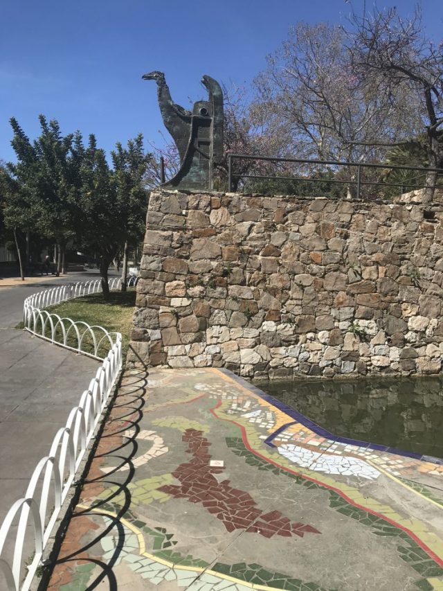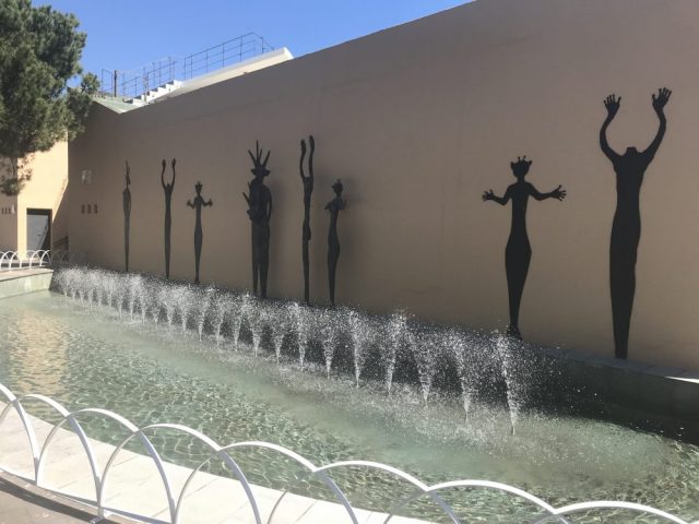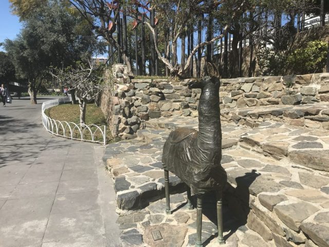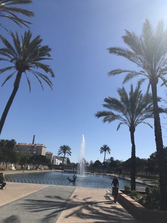 さらに、あちこちにアート作品が散りばめられ、お散歩が楽しい〜。マラガらしくヤシが茂り、噴水が勢いよく青い空へ放たれ、水音が心を潤す。