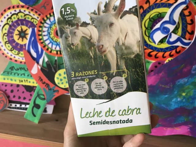 日本のスーパーに、パックに入った「ヤギのミルク」って売ってたっけ?マラガではこうして「ヤギの写真付き」で売られています。