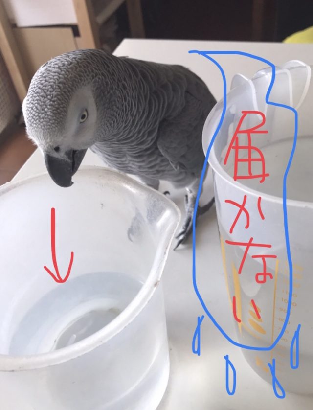 3・ここから水面の近い、高い方の水差しに顔を突っ込んで水を飲む。待望の水をゲット。