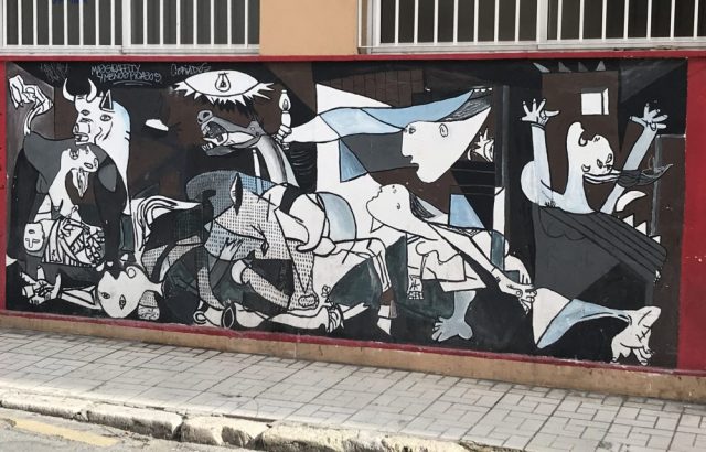 通るのが楽しい〜。通勤路にゲルニカ、って(笑)さすがピカソの生誕地。マラガの町では、通りの壁や建物によく絵が描かれている。