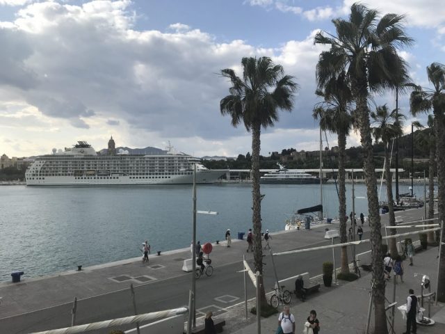 ちょうどクルーズ船が停泊中。豪華じゃ〜。その横を通りながら、うろうろと撮影スポットを探す。