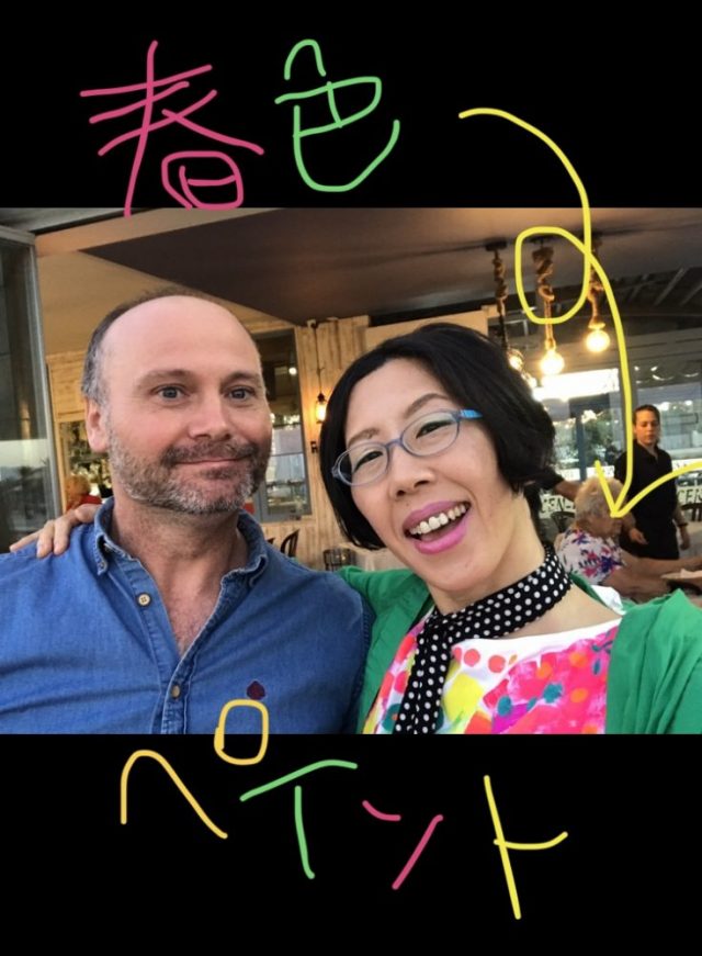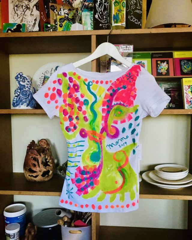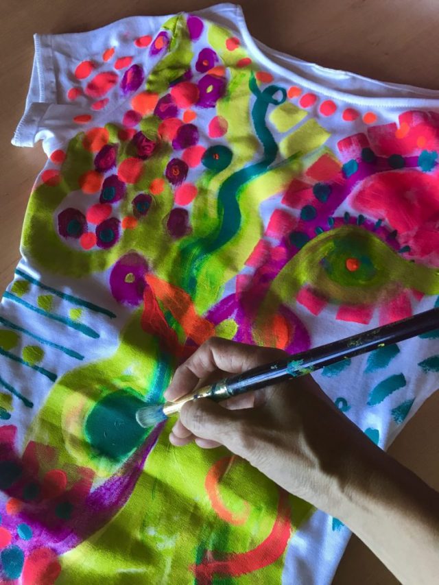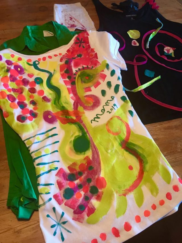 最新のペイントシャツ「春の女」を紹介します。思いきってかなりの蛍光色(笑)日本でも着られるかしら。ドン引き?