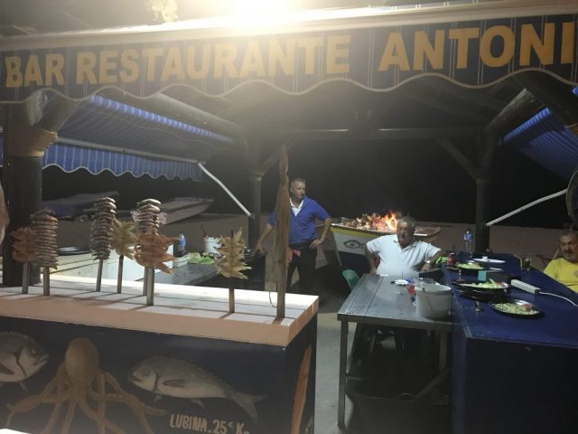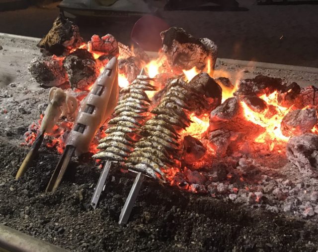 マラガと言えば「海岸通りで焼きイワシ」オーレ!いよいよシーズン開始。脂が乗っておいしい〜。テーブルに着くやみなさん